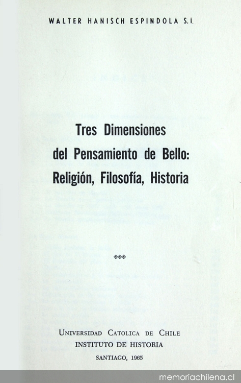 Tres dimensiones del pensamiento de Bello : religión, filosofía, historia