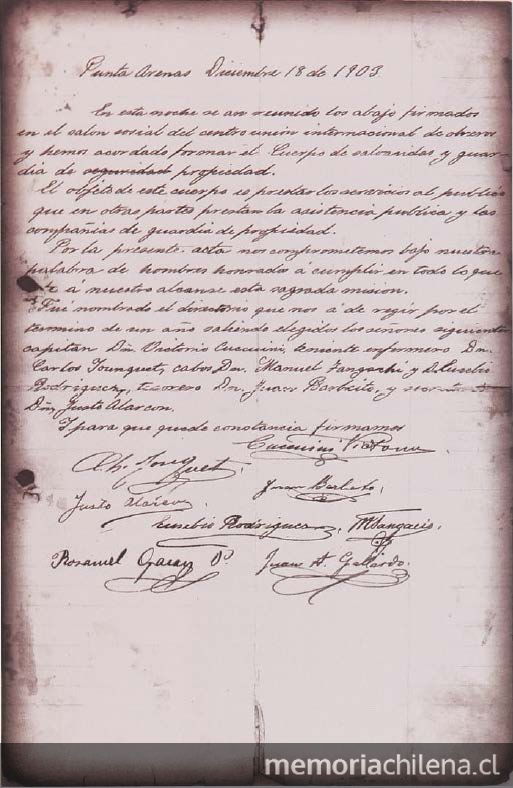 Acta de fundación de la Cruz Roja Chilena, Punta Arenas, 18 de diciembre de 1903