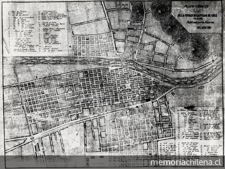 Plano-croquis de la ciudad de Santiago de Chile, 1863