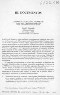 José Ricardo Morales, académico, ensayista y destacado dramaturgo, nació en España en 1915, pero se autodefincomo chileno por vocación, más aún luego de obtener la nacionalidad en 1962. En su juventud estudió Filosofía y Letras en la Universidad de Valencia y luchó contra el fascismo tanto desde las tablas como en el mismo campo de batalla. Participó de la compañía universitaria "El Búho", la cual -al igual que la compañía "La Barraca", de Federico García Lorca- expresaba abiertamente su postura republicana. Tras combatir y ser retenido en un campo de concentración, salió al exilio a bordo del Winnipeg, el barco que trajo a Chile a los refugiados españoles en 1939. Se trataba, en su mayoría, de intelectuales que -por gestión de Pablo Neruda- se trasladaron al país y contribuyeron con la cultura chilena desde las más diversas disciplinas.