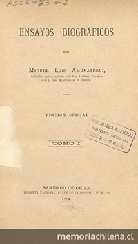 Ensayos biográficos. Santiago :Impr. Nacional,1893-1896. 4 v. ;23 cm.