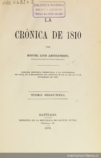 La crónica de 1810. Santiago :Impr. de la República,1876-1899. 3 t. en 2 v. ;28 cm.
