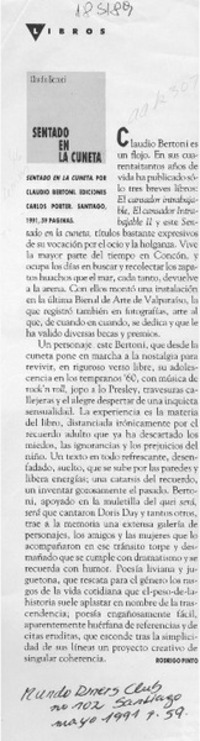 Sentado en la cuneta. Santiago :Eds. Carlos Porter,impresión de 1990. 58 p. ;16 cm.