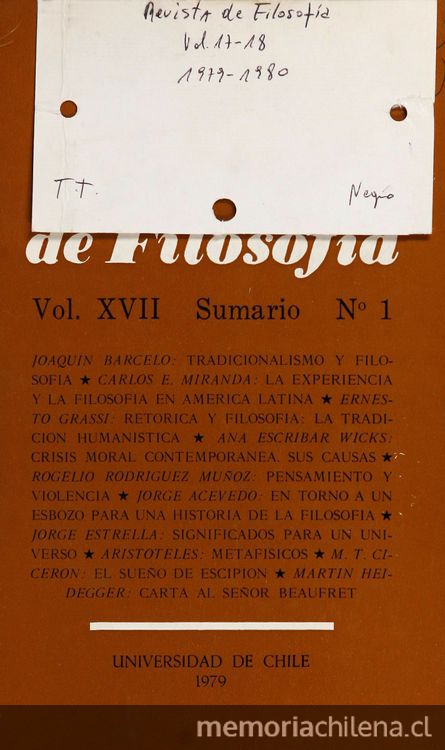 Revista de filosofía Vol.17:no.1 (1979:jun.)