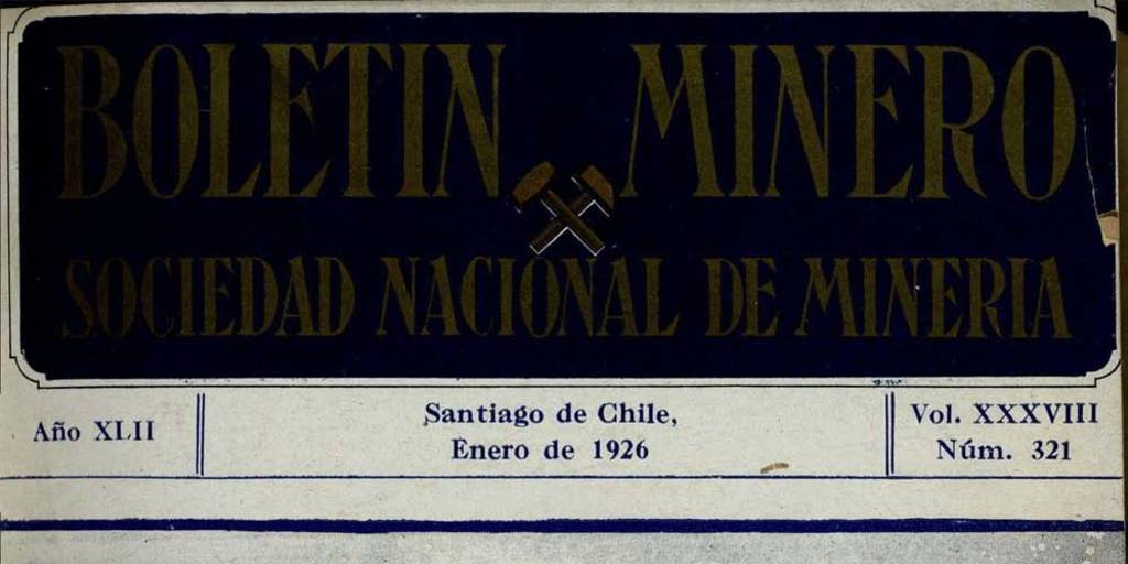 Boletín de la Sociedad Nacional de Minería. Santiago: La Sociedad, 1883-1918. 34 volúmenes, año 42, volumen 38, número 321, (enero 1926), páginas 138-142
