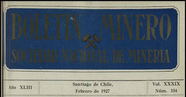 Boletín minero de la Sociedad Nacional de Minería. Santiago : La Sociedad, 1913-1925. volúmenes, año 43, volumen 39, número 334, (febrero 1927), páginas 89-104