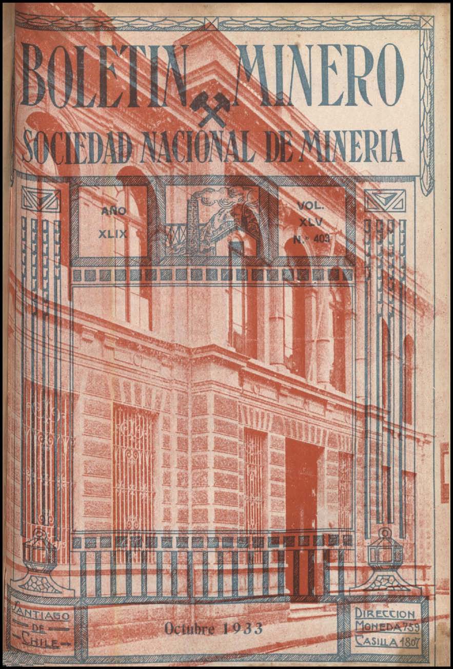 Boletín minero de la Sociedad Nacional de Minería. Santiago : La Sociedad, 1913-1925. volúmenes, año 49, volumen 45, número 403, (octubre 1933), páginas 380-430