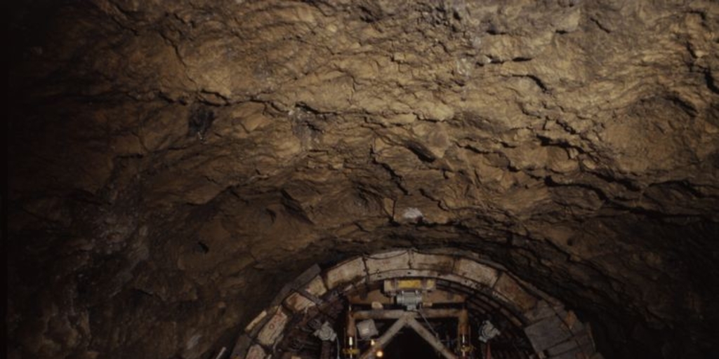 Mineros en labores subterráneas en yacimiento cuprífero, hacia 1980