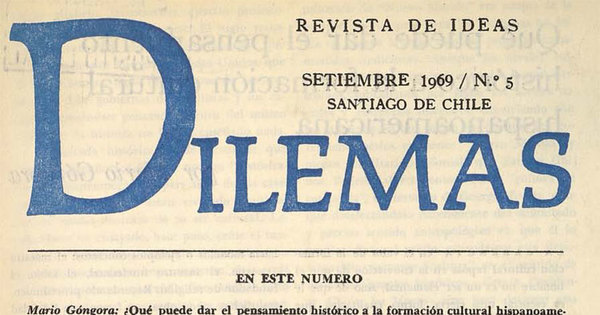 Dilemas. Santiago : [Editor no identificado], 1966-1976 (Santiago : Editorial Universitaria) volúmenes, número 5, (septiembre 1969)
