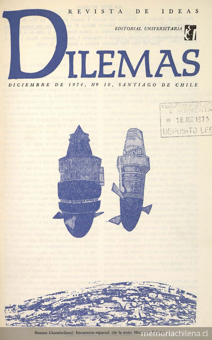 Dilemas. Santiago : [Editor no identificado], 1966-1976 (Santiago : Editorial Universitaria) volúmenes, número 10, (diciembre 1974)