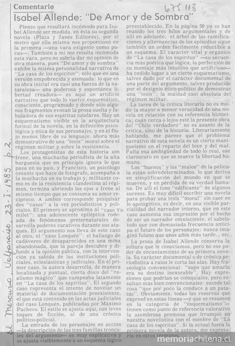 El Mercurio. Santiago : Talleres El Mercurio, 1900- . volúmenes, (23 enero 1985), página 2