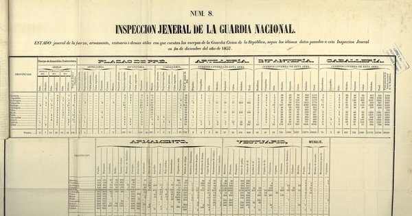 Cuadro sinóptico de la Inspección General de la Guardia Nacional, Armas y Vestuarios