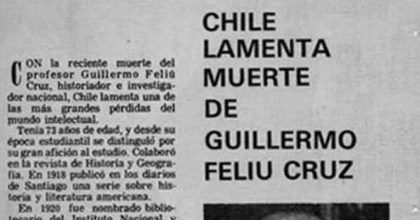 Chile lamenta muerte de Guillermo Feliú Cruz