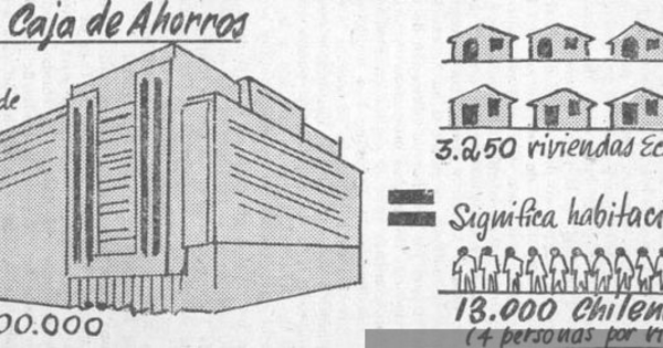 Edificio Caja de Ahorro, $750.000.000 = 3.250 viviendas económicas, hacia 1952