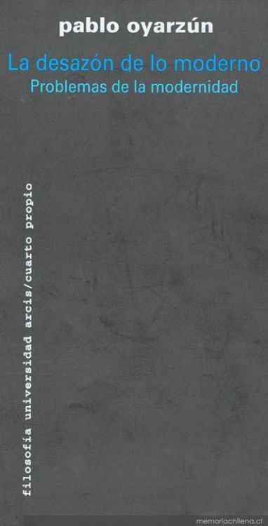 La desazón de lo moderno : problemas de la modernidad / Pablo Oyarzún R. 1ª ed. Santiago : Escuela de Filosofía, Universidad Arcis : Editorial Cuarto Propio, [2001] ([Santiago] : Colorama S.A.) 424 p.