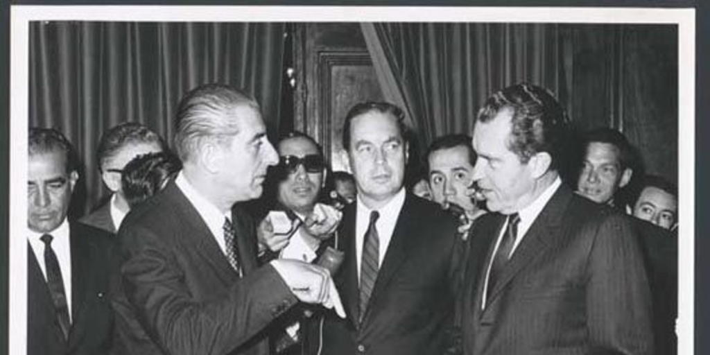 Eduardo Frei Montalva junto a Richard Nixon, al centro Ralph A. Dungan, embajador de EE.UU. en Chile, 1967