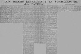 Don Isidoro Errázuriz y la fundación de "La Patria"