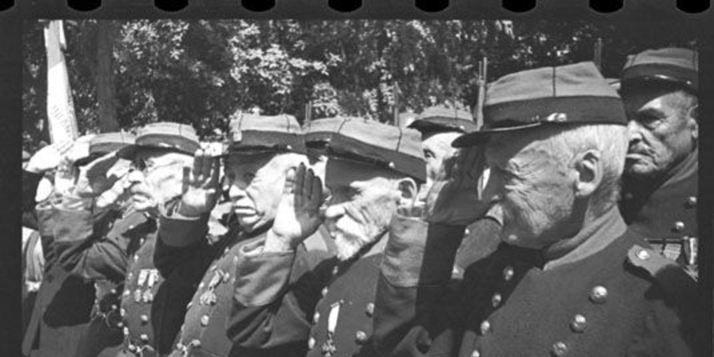 Veteranos de guerra en fiesta del roto chileno, en Plaza Yungay, 20 de enero de 1947