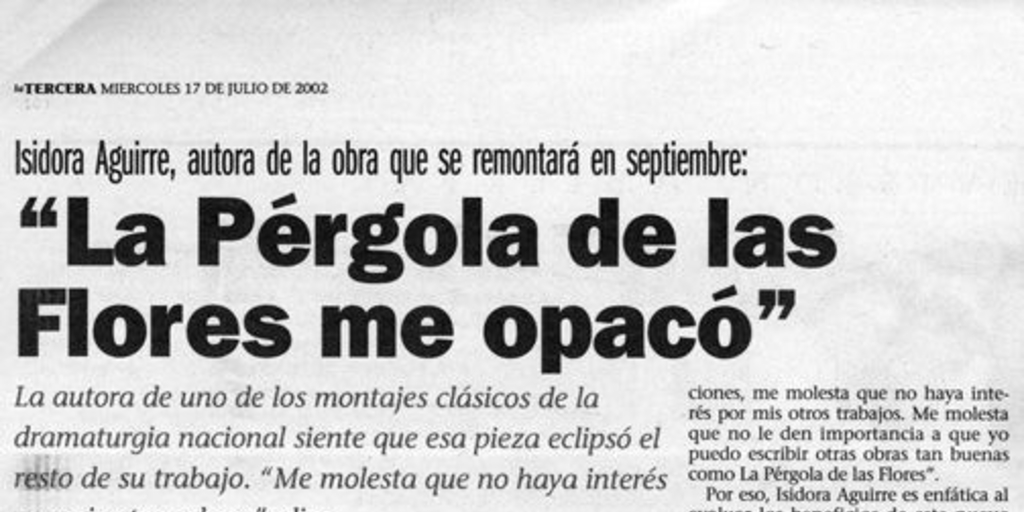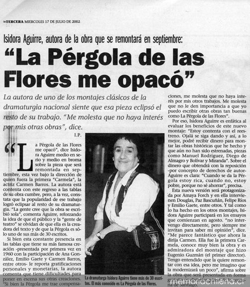La Tercera. Santiago : Consorcio Periodístico de Chile (COPESA), 1986-. v., (17 jul. 2002), p. 43