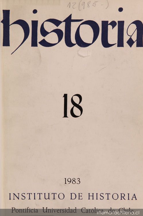 Historia / Pontificia Universidad Católica de Chile, Instituto de Historia. Santiago : El Instituto, 1961- (Santiago : Universitaria) v., n° 18, (1983)