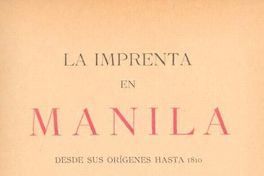 La imprenta en Manila desde sus orígenes hasta 1810 / por J.T. Medina.Santiago de Chile : Impreso y grabado en Casa del Autor, 1896. xcvi, 280 p.