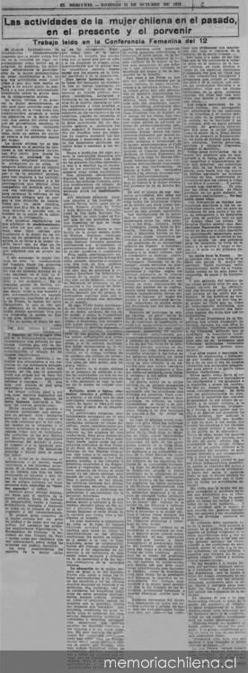 Las actividades de la mujer chilena en el pasado, en el presente y en el porvenir