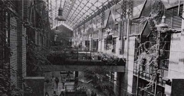 Interior del nuevo edificio de la Facultad de Administración y Economía de la Pontificia Universidad Católica de Chile, hacia 1967