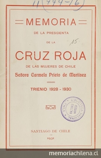 Cruz Roja de las mujeres de Chile : memoria del año 1939, presentada por la presidenta. Santiago :"Claret",1940. 51 p.;19 cm.