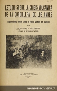 Estudio sobre la crisis volcánica de la Cordillera de los Andes : Exploraciones aéreas sobre el Volcán Quizapú en erupción. Santiago :[s.n.],1934. 19 p. ;27 cm.