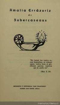 Amalia Errázuriz de Subercaseaux. Padre las Casas (Chile) :Imprenta y Editorial "San Francisco"[1934?]. viii, 438 p., [18] p. de láms. :il. ;24 cm.