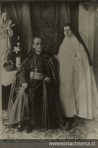- Carmen Sánchez Fontecilla, monja del Buen Pastor y su primo, Obispo de La Serena, ca. 1890