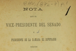 Nota que el vice presidente del Senado y el presidente de la Cámara de Diputados dirigen a los miembros del Congreso que firmaron el acta de 1 de Enero de 1891