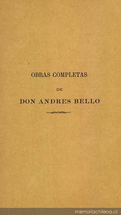 Objeto Digital donado por la Universidad Nacional Andrés Bello Volumen 1 corresponde a: Obras completas de don Andrés Bello. Ed. hecha bajo la dirección del Consejo de Instrucción Pública en cumplimiento de la lei de 5 de septiembre de 1872. Santiago : Impreso por Pedro G. Ramirez, 1881-1883. 15 v.
