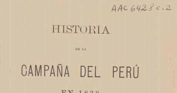 Historia de la Campaña del Perú en 1838 / por Gonzalo Bulnes. Santiago : Impr. de Los Tiempos, 1878. viii, 444 páginas, [3] hojas de planos plegables