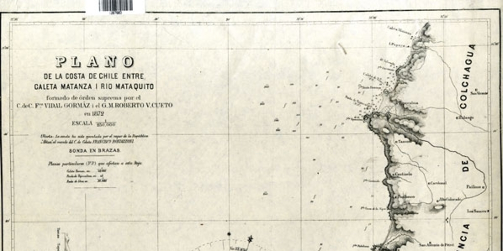 Plano de la costa de Chile [mapa] : entre Caleta Matanza i Río Mataquito, formado de órden suprema por el C. de C. Frco. Vidal Gormáz i el G. M. Roberto V. Cueto en 1872