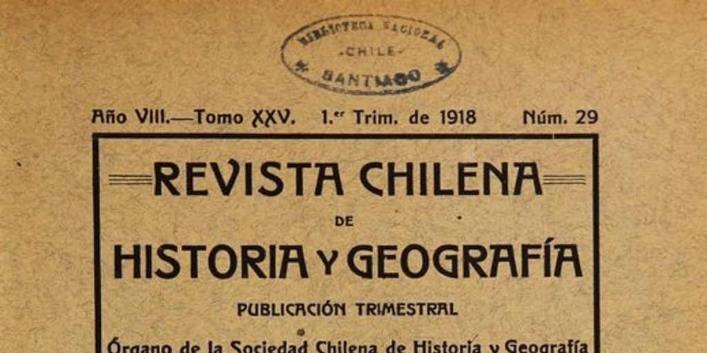 Revista chilena de historia y geografía / Sociedad Chilena de Historia y Geografía. Santiago : La Sociedad, 1911- . v., año 8, tomo 25, n° 29, (1918)