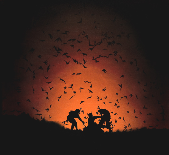 Goya, comics, gótico y surrealismo pop en la selección de pinturas y dibujos de este artista chileno radicado en Los Ángeles, California.