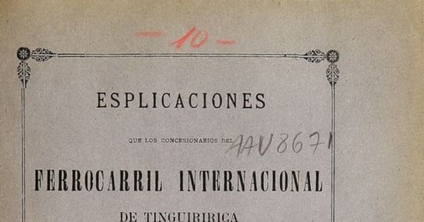Esplicaciones que los concesionarios del Ferrocarril Internacional de Tinguiririca tienen el honor de elevar al soberano Congreso sobre la deficiencias i errores que en su proyecto ha encontrado la Dirección de Obras Públicas