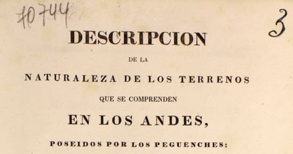 Descripción de la naturaleza de los terrenos que se comprenden en los Andes, poseídos por los peguenches; y las demas espacios hasta el Rio de Chadileubu