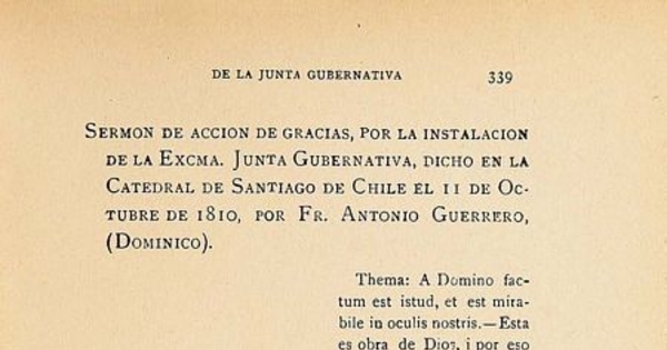 Sermón de acción de gracias por la instalación de la Junta, dicho en la catedral de Santiago, el 11 de octubre de 1810