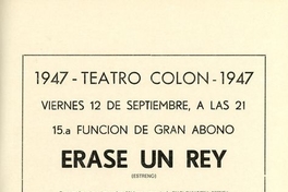 Afiche de estreno de ópera "Érase un rey" (1947) de Juan Casanova Vicuña