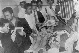 Masacre en Plaza Bulnes. La mujer que yace en la camilla es Ramona Parra