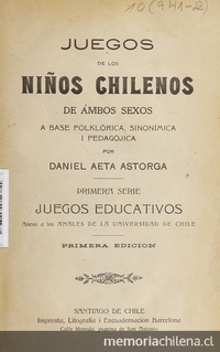 Juegos de los niños chilenos de ambos sexos a base folklórica, sinonímica i pedagójica: primera serie: juegos educativos