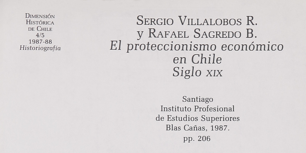 Sergio Villalobos R. y Rafael Sagredo B. "El proteccionismo económico en Chile siglo XIX"
