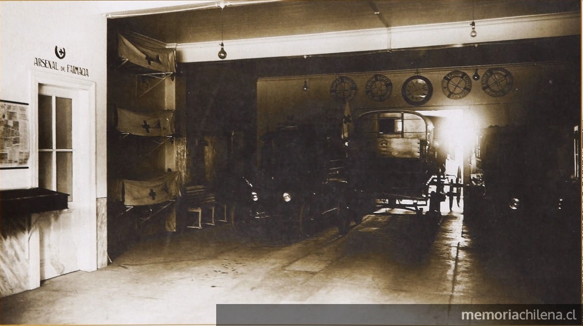 Salón del Cuerpo de Asistencia Pública, actualmente la Cruz Roja Chilena, filial Punta Arenas, hacia 1905