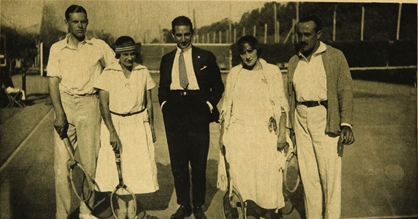 Jugadores de la final del doble mixto en las canchas del International Tennis Club, 1923