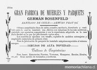 - Aviso de "gran fábrica de muebles y parquets Germán Rosenfeld"