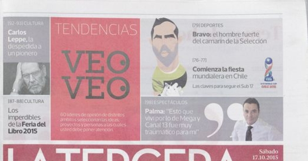La Tercera. Santiago : Consorcio Periodístico de Chile (COPESA), 1986-. volúmenes, (17 octubre 2015), páginas 92-93