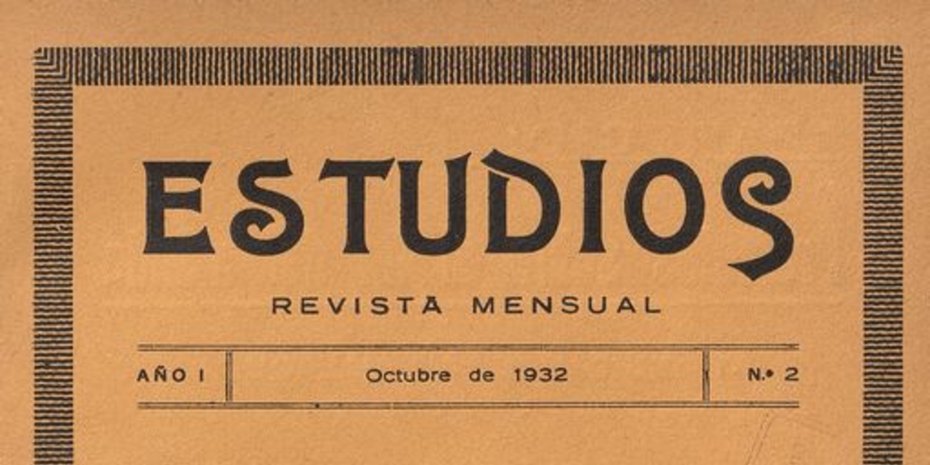 Estudios. Santiago : [Editorial no identificada], 1932-1957. 25 volúmenes, año 1, número 2, (octubre 1932)