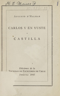 Carlos V en Yuste ; Castilla. [Santiago] :Sociedad de Escritores de Chile,1945. 105 p. ;19 cm.